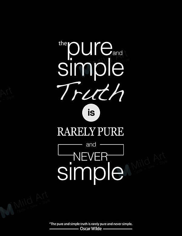 Rarely pure and never simple. Compre online Rarely Pure and Never Simple. More triumph more glory more misconception. That my dear Algy is the whole truth pure and simple to which his companion replies The truth is rarely pure and never simple It is a wry observation and an ironic twist on a cliche about the false norms of society and the twisted dishonest ways we as.